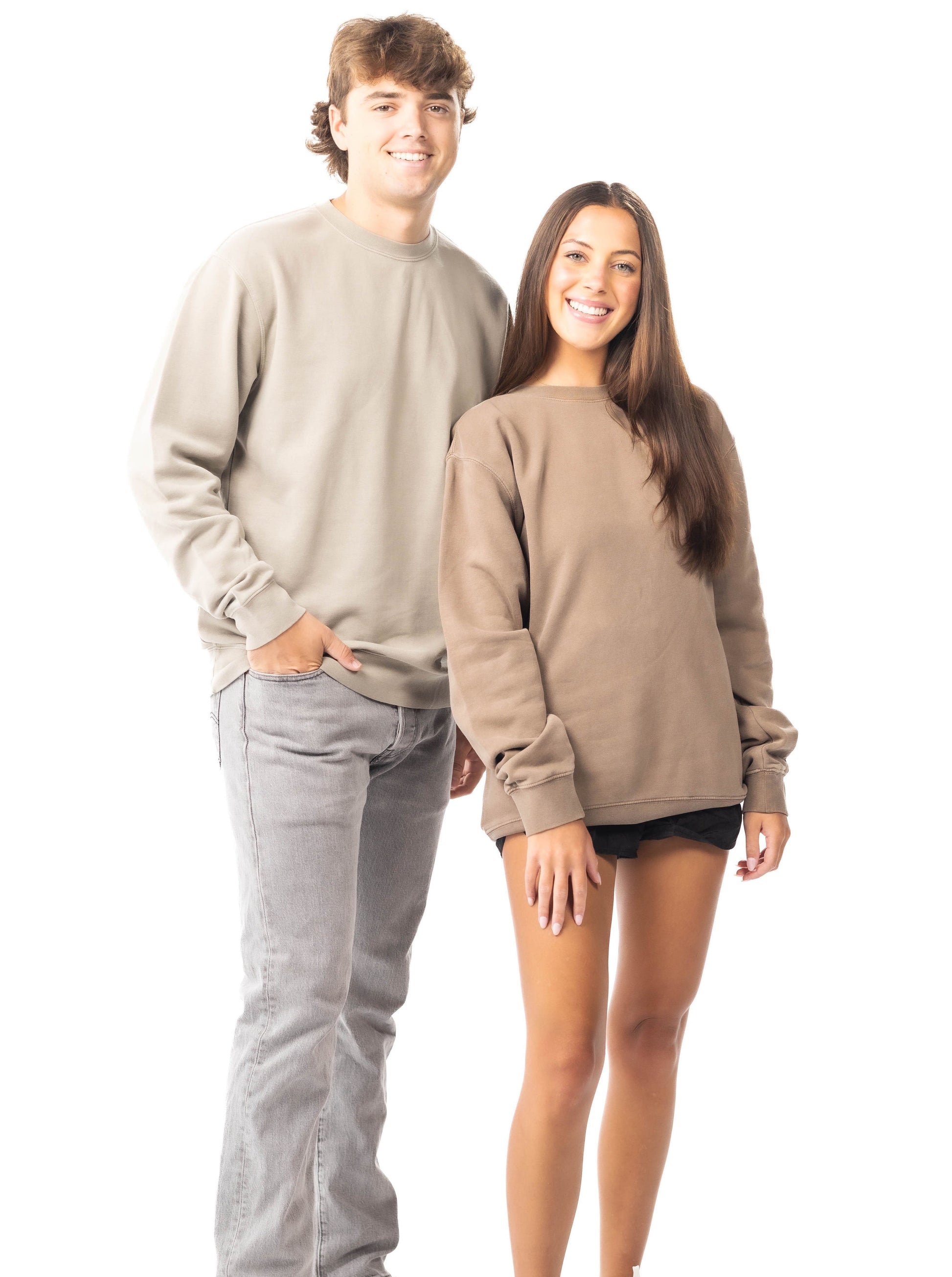 Model is 6'2 wearing size large. Pictured: pigment cement. Model is 5'5 wearing size medium. Pictured: pigment clay.